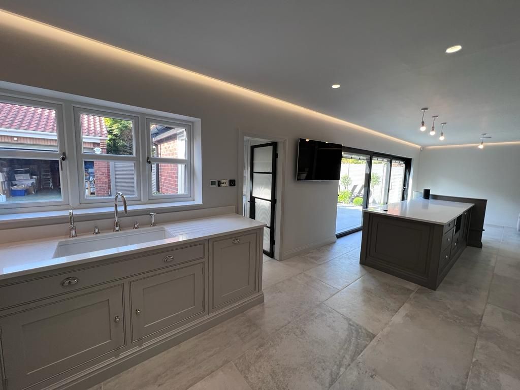 Initially, the couple came to us for our help in finding a way to accommodate their new kitchen without the hassle of having to knock two rooms into one at their 1990s new build in the picturesque village of Swanland, near Hull. However, our director and project manager Tony Douglass challenged them to think outside the box and refurbish all of the ground floor space around the kitchen centre piece while the house was in upheaval anyway. This would ensure the finished space really had the wow factor and all areas of the downstairs complemented the kitchen centrepiece.
